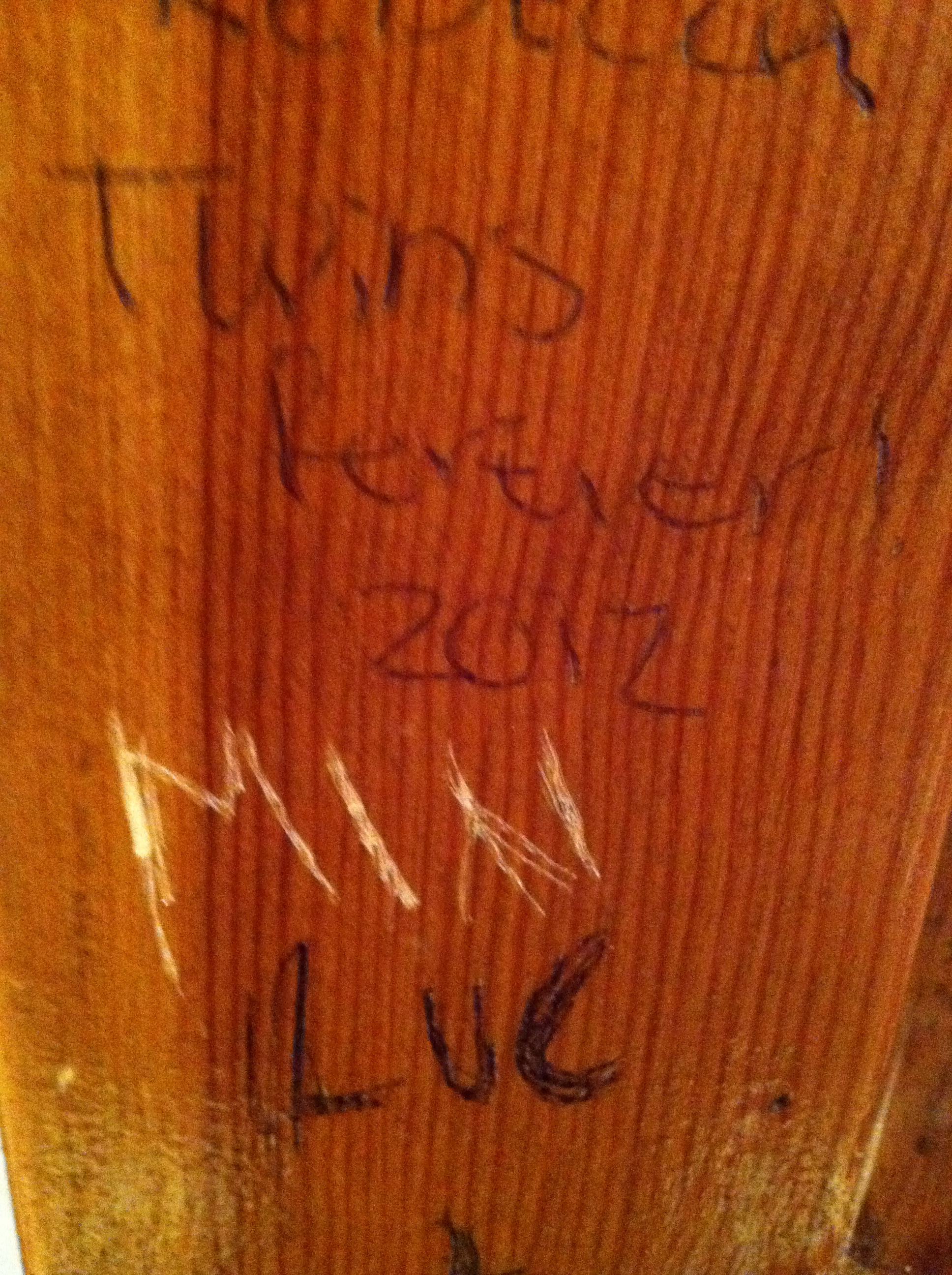 Beyond the random bathroom stall door, I also have enjoyed reading carvings in tree wood over the years. I remember seeing the names of local sweethearts framing a mathematical plus sign and encircled with a heart shape carved into trees in my N.C. hometown. “Jim+Kathy, 1982,” for example.